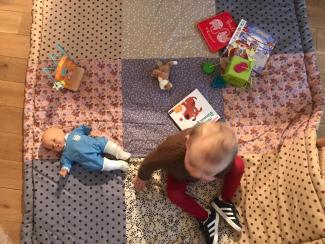 Cette petite fille a accueilli un petit frère sur son tapis de sol assez grand et confortable pour désormais des jeux à deux.